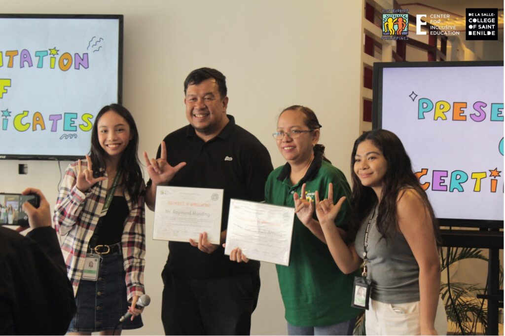 The Center for Inclusive Education (CIE), in partnership with Best Buddies Benilde (BBB), hosted a Deaf Awareness Seminar last March 12, 2024. Facilitated by the School of Deaf Education and Applied Studies, the event aimed to advocate for the Filipino Deaf Culture and teach the participants basic Filipino Sign Language. Around 30 Benildeans participated in the event.