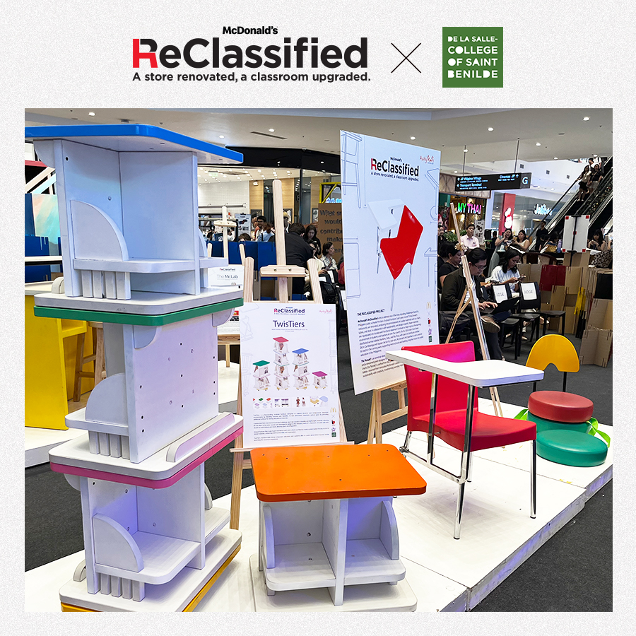 In an exciting new collaboration, McDonald’s has partnered with the College of Saint Benilde’s Interior and Industrial Design programs. The partnership invited students to create innovative furniture designs to be used in public schools across the Philippines. This collaboration not only provided students with the opportunity to apply their skills to real-world projects but also allowed them to make a meaningful contribution to improving education in the country. The furniture designs were showcased at the Main Activity Center of Ayala Malls Manila Bay on November 25, 2024. Notable designs included a chair by Willie Garcia from Junknot, a design expert in transforming waste into functional furniture, as well as three finalists from the ReClassified Student Competition.