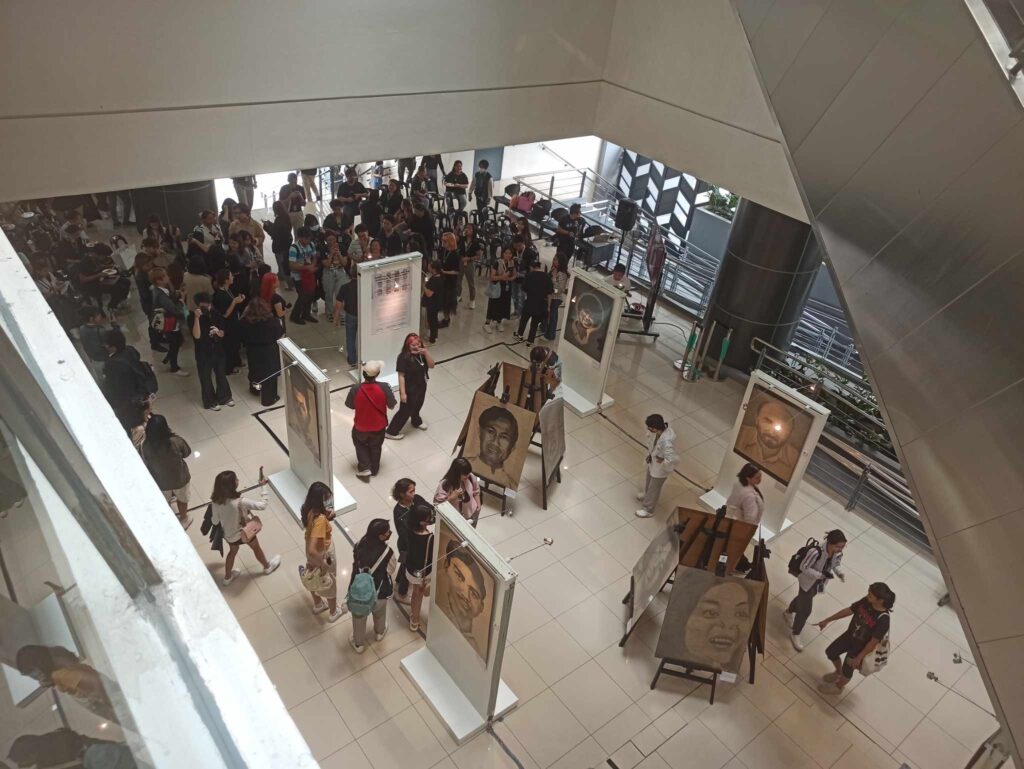 The exhibit featured portraits of Martial Law Heroes created by the DLS-CSB Freehand Drawing classes (DFX1 and DFDD1) of Professor Ramon Manuel de Leon and produced by the Benilde Center for Campus Art in 2018.